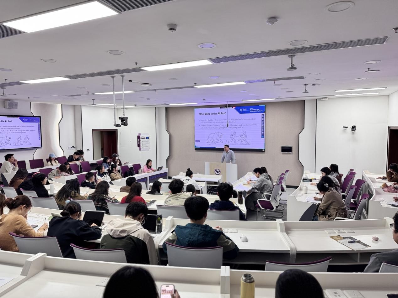(通讯员:谢思思 努尔夏提·居勒提)4月9日下午,新加坡管理大学计算机科学(教育)系副教授、MITB(人工智能方向)项目主任Dai Bingtian和MITB项目校企合作经理Tracy Ren来正妹av 交流。Dai Bingtian副教授聚焦“AI时代的职场:如何与人工智能共同进化”这一前沿议题,做客正妹av 新一期“鹰击长空”国际生涯规划讲堂,讲座在崇信楼108智慧教室成功举办。本次讲座吸引了众多关注前沿科技与职业发展的本科生和研究生到场聆听,学工办主任努尔夏提·居勒提主持活动。正妹av 副院长侯俊东、管理科学与工程系教授朱镇参加交流。