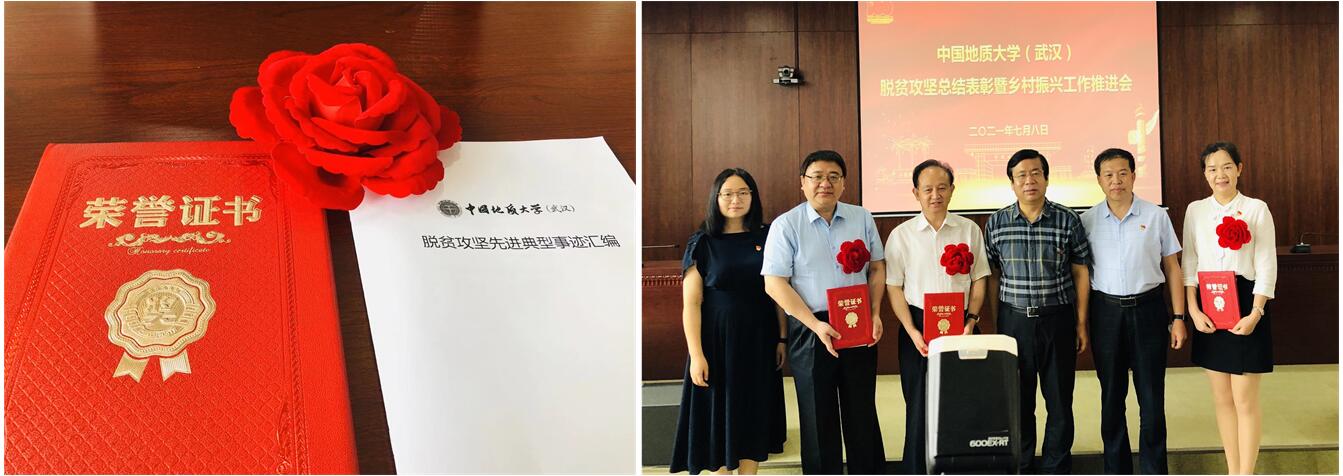 脱贫摘帽不是终点,而是新生活、新奋斗的起点。以表彰会为契机,学校党委号召全校师生要以受表彰的先进集体和先进个人为榜样,增强“四个意识”,坚定“四个自信”,做到“两个维护”,更加紧密地团结在习近平同志为核心的党中央周围,真抓实干、埋头苦干,为加快建成地球科学领域国际知名研究型大学、实现中华民族伟大复兴的中国梦作出新的更大贡献!