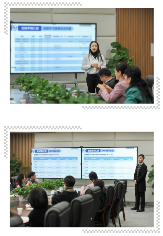 徐媛老师首先汇报正妹av 学生学习情况和学风建设情况。近年来,正妹av 坚持打造“严在正妹av ”品牌,正妹av 学风建设卓有成效,学生学习成绩大幅提高,迈入绩点“3.0+”时代。徐老师向班主任老师对班级学风建设的付出表示感谢,指出在接下来的工作中要继续关注高不及格学分学生的学业状态和心理压力。接下来,张弛老师通报了2021届和2022届毕业生班级就业情况,并根据实现充分就业、高质量就业的目标,结合目前各班开展工作的具体情况,提出了工作建议。