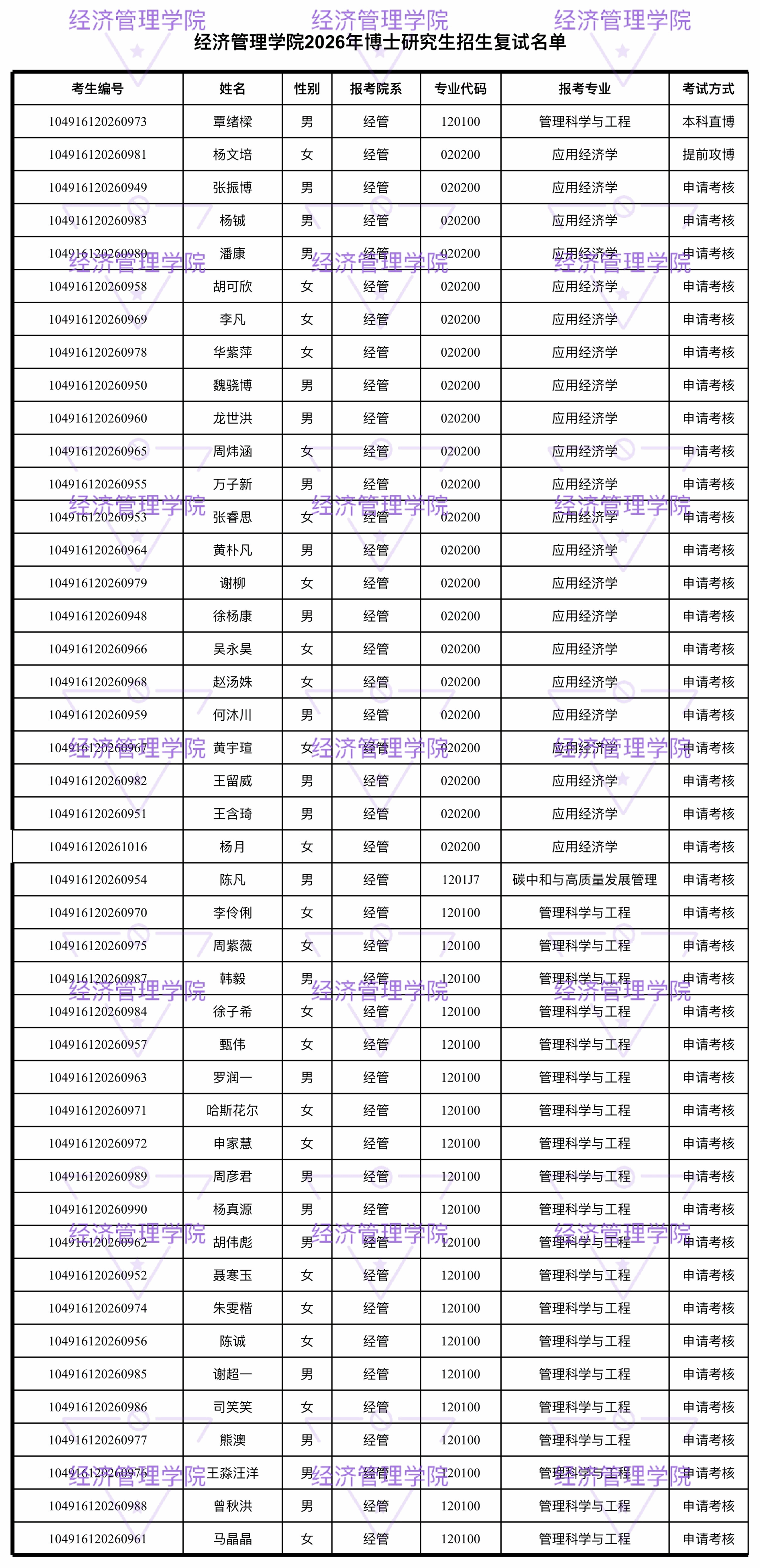 (2) 综合素质考核:该项考核由专业基础和素质面试两部分构成。专业基础部分进行笔试考核,成绩百分制,满分100分,专业笔试成绩在综合素质成绩中占40%。其中应用经济学专业笔试内容为《高级经济学》,管理科学与工程专业、碳中和与高质量发展管理专业笔试内容为《管理运筹学》。考核小组通过面试对考生的外语听说能力、科研能力、创新潜质、专业素养、学科背景、学业水平等进行考核,成绩百分制,满分100分,面试成绩在综合素质成绩中占60%。面试时考生需先进行个人陈述,时长10分钟以内,含英文自我介绍、攻博计划。个人陈述用PPT请在4月25日中午12点前以“报考专业+考生姓名+个人陈述”为主题发送至邮箱[email protected]。