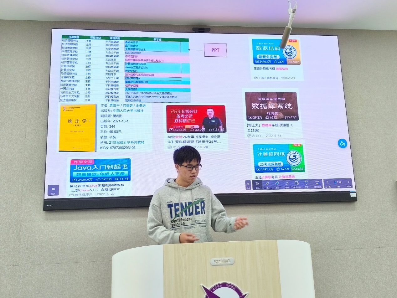 接着,两位23级信管专业的优秀学长学姐结合自身的学习经历。他们从信管专业核心课程的学习方法入手,详细介绍了如何高效掌握编程语言、数据库原理、信息系统分析与设计等难度较大的课程内容,例如通过多做实践项目巩固编程知识、利用线上学习资源拓展数据库应用技能等。同时,学长学姐还结合AI时代的学习需求,分享了如何将AI工具融入日常学习,如利用AI辅助文献检索与分析、借助数据分析软件提升课程作业质量等,为新生提供了极具针对性的学习建议。